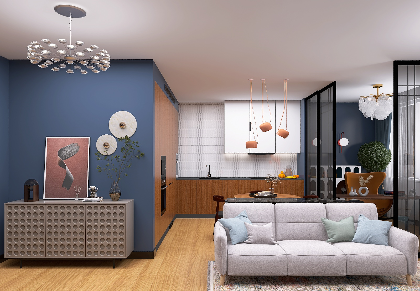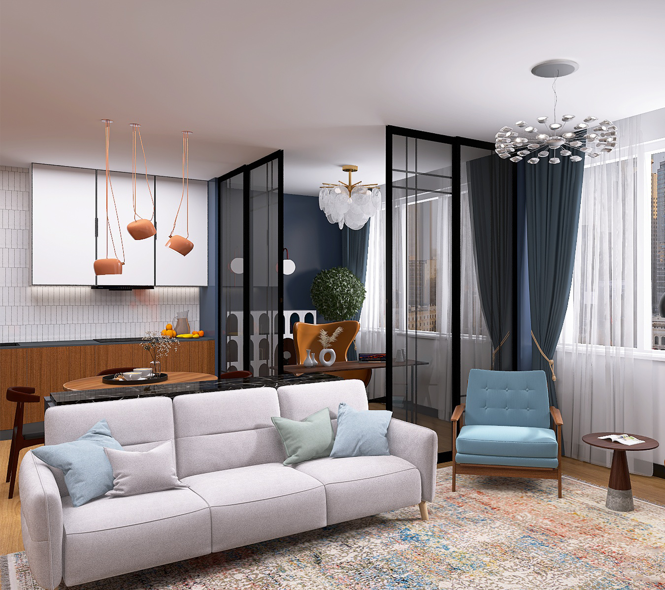 Дизайн-проект с полным набором чертежей для строителей, ведомостями, спецификациями и 3D визуализацией помещений.